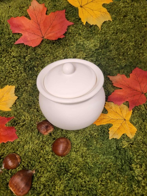 "Sorcellerie Noire", logée dans un élégant chaudron en jesmonite blanc.