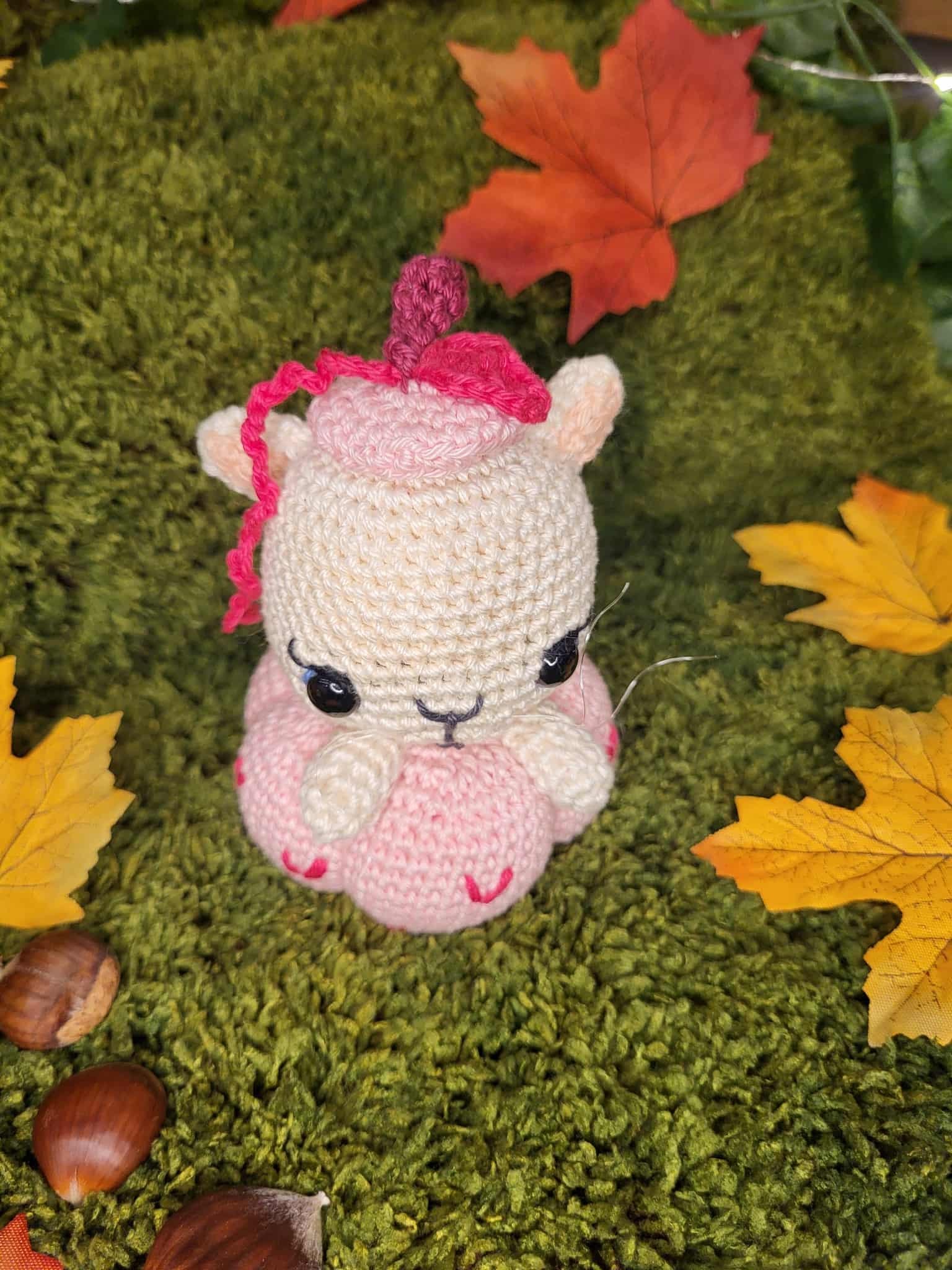 Blottie au coeur de sa citrouille ornée de tendres coeurs,