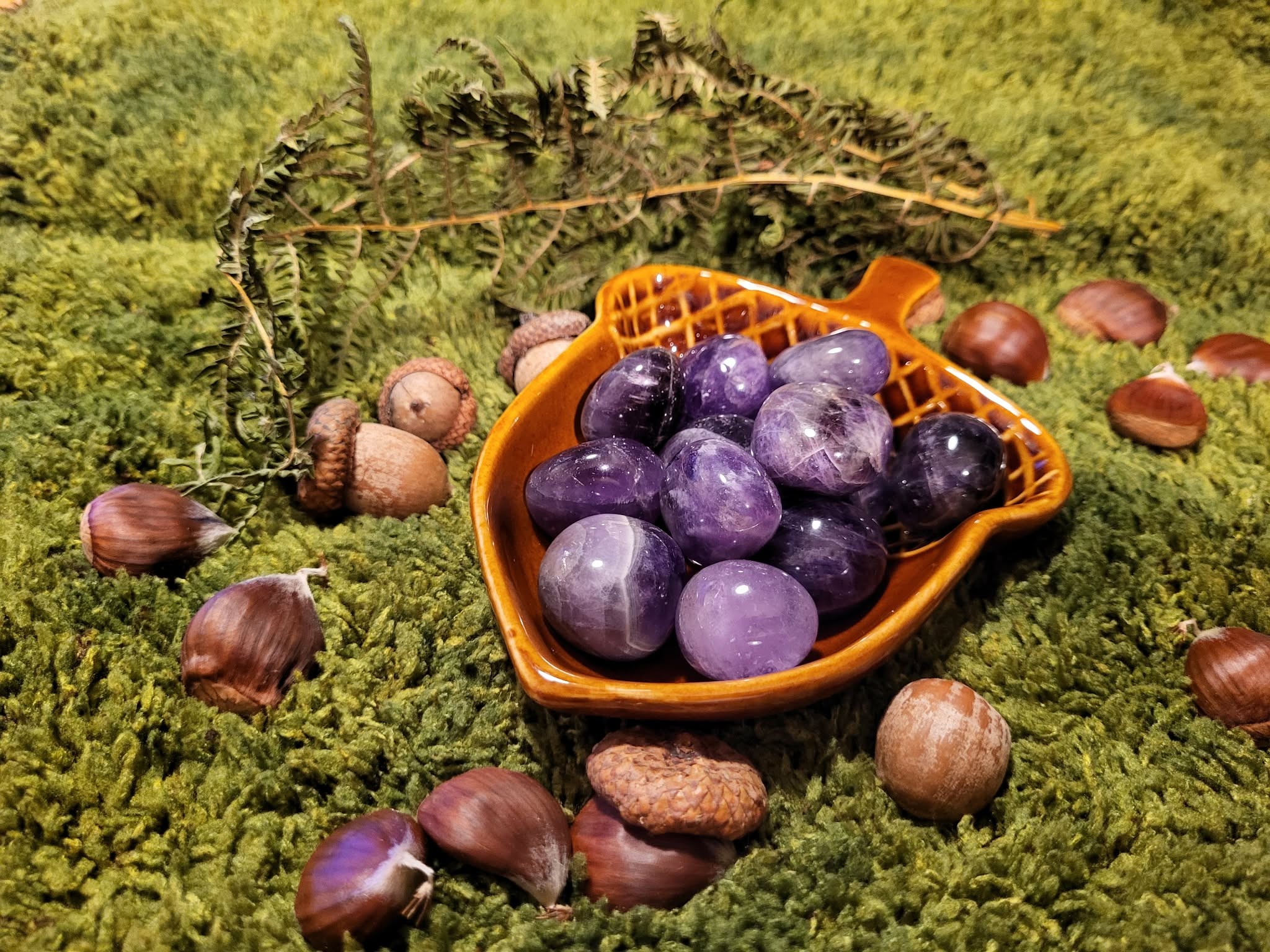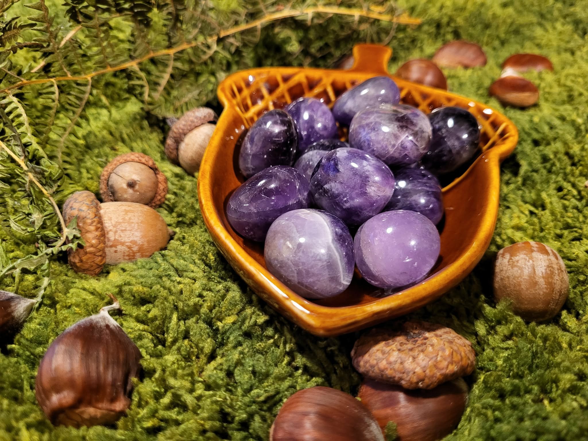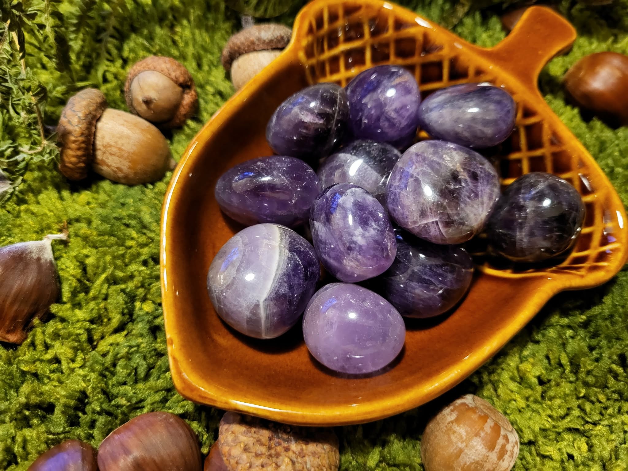 Les pierres roulées en Améthyste diffusent une énergie douce et profondément apaisante.