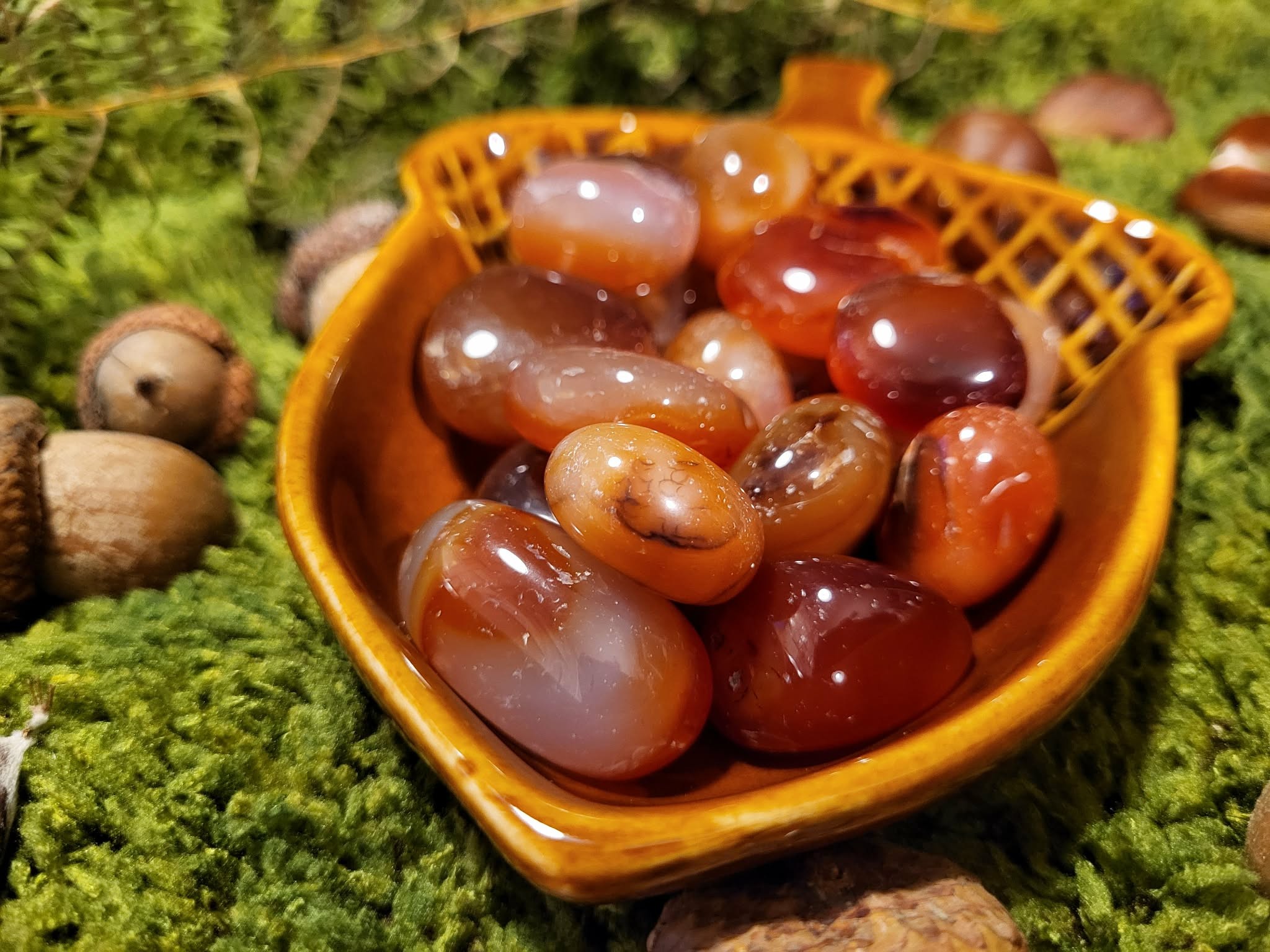 Les pierres roulées en Cornaline diffusent une énergie chaleureuse et dynamisante.