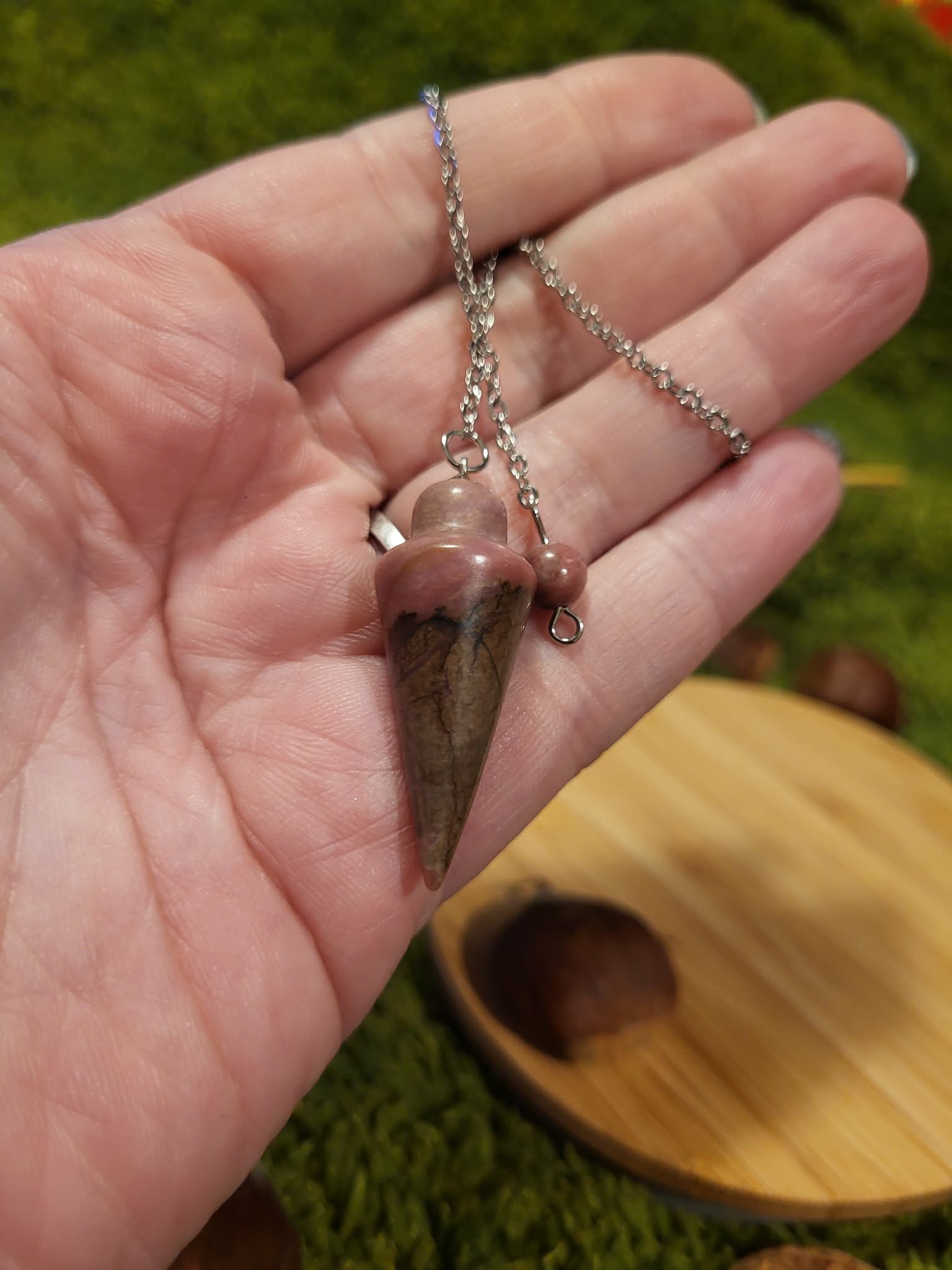 Ce pendule en Rodhonite, taillé en goutte, est une pierre de guérison émotionnelle, d'apaisement du coeur et d'équilibre intérieur. Elle aide à libérer les blessures affectives, calmer le stress et encourager le pardon ainsi que la compassion.